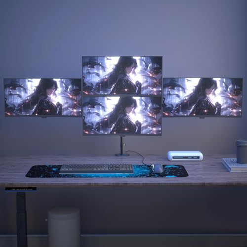 Pholiten Quad 4 Monitor Arm Desk Mount for Max 32 inch Screens, Gas Spring Adjustment Monitor Stand with VESA 75x75mm, 100x100 mm, Clamp & Grommet Install Black MD18864 - style: 4 monitor mount