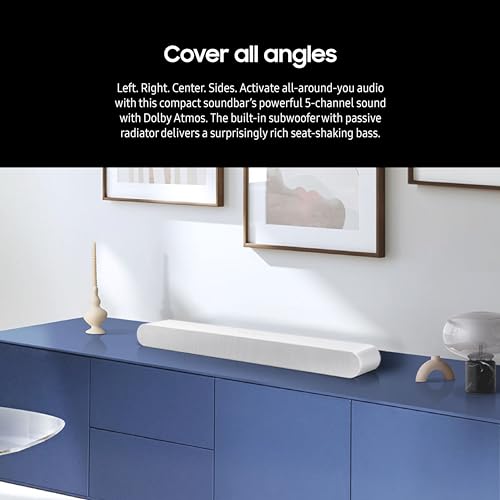 - ALL-IN-ONE DESIGN: Unlock audio all-around-you with this compact soundbar’s powerful 5-channel sound with Dolby Atmos; Built-in subwoofers deliver deep bass and all-in-one design makes for easy setup without sacrificing surround sound performance
