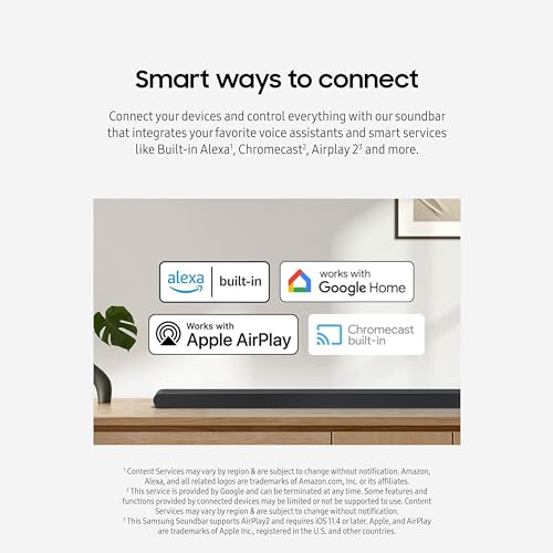 - SMART INTEGRATION: Connect your devices and control everything with our soundbar that integrates your favorite voice assistants and smart services like built-in Alexa³, Chromecast⁴, Airplay 2⁵ and more
