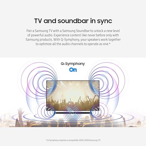 - Q-SYMPHONY: Pair a Samsung TV with a Samsung Soundbar for a new level of powerful audio; Experience content like never before only with Samsung products; With Q-Symphony, your speakers work together to optimize all audio channels to operate as one¹