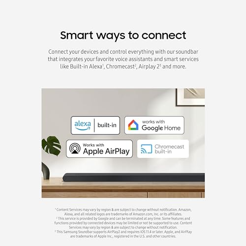 - SMART INTEGRATION: Connect your devices and control everything with our soundbar that integrates your favorite voice assistants and smart services like built-in Alexa³, Chromecast⁴, Airplay 2⁵ and more